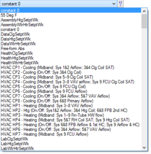 As you can see from the example image on the left, with no filtering the drop-list would contain a large number of profiles (note the scrollbar), many of which are intended for functions other than heating. It also includes a large number of Title24 profiles, which may not be relevant. In contrast, the image on the right shows the drop-list with the filtering options applied – only Generic data-source profiles are displayed (excluding the large amount of Title24 profiles) and of those, only the profiles marked with the Heating category.