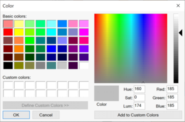 This option pops-up the following window to enable you to customise the display colours for your shading images: