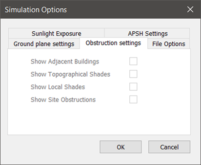 Check/uncheck boxes in the pop-up window to turn the display of obstructions feature on/off.