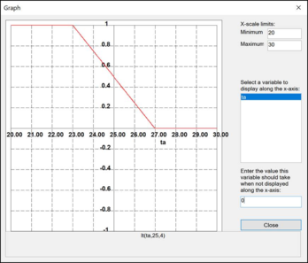 Click on the Create formula button and the formula “gt(ta,25,4)” will appear in the Formula profile box. The gt() function is a ‘fuzzy’ version of the “greater than” step function, its third argument indicating the proportional bandwidth. The dialog will then look like this: