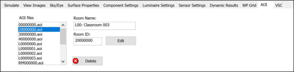 This tab lists all the Area of Interest (AOI files) created for the model. When a file is selected, its space name and ID will be displayed.