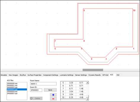 If required, each AOI can be edited by selecting the file, clicking Edit, then changing the point coordinates. The AOI tab changes when Edit is clicked, to list the coordinates of each point, and the numbered points will appear in the model view: