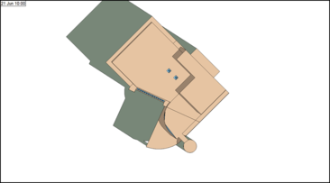 The Azimuth will be determined by the rotation of the building set in ModelIT, not by the view in the model window. A building with a site rotation of 45° is shown in the image below, with the Azimuth set to 180° and the Altitude set to 90°, so that North is up the screen.