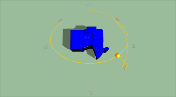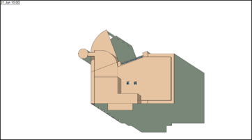 As such, to generate a plan view of shading where North is to the top of the page, as per usual, the Altitude needs to be set to 90° to be directly overhead for a plan view, and the Azimuth needs to be set to 180° as the viewing position in SunCast is effectively the bottom of the screen, as we can see in ModelViewer II.