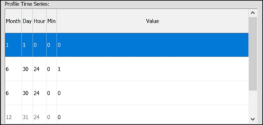 Values in the Profile Time Series table are specified by month, day, hour and minute. Each value is taken to be expressed in the same units as those specified in the Unit Type selection above.