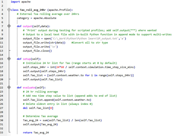 The following ‘output’ class method example provides a simple means to output runtime data from a Scripted profile to a local text file for debugging purposes. It is similar to using ‘print’ in a Python IDE.