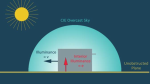 The ratio of the illuminance at a point on a given vertical plane due to the light received directly from a sky of assumed or known luminance distribution, to that on a horizontal plane due to an unobstructed hemisphere of this sky. Direct sunlight is excluded from both values of illuminance (i.e. CIE Overcast Sky). Usually the ‘given vertical plane’ is the outside of a window wall. The VSC does not include reflected light, either from the ground or from the buildings. The maximum VSC possible for a completely unobstructed vertical window is approx. 40%.