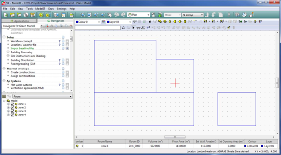 Building geometry can be created using the ModelIT module as described in the Green Mark user guide and other <VE> user guides.