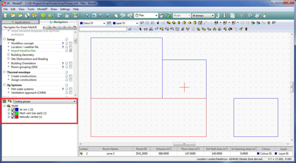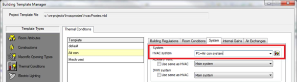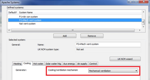 For Air conditioning and Mechanical ventilation, a corresponding HVAC system must be created, and linked to the Apache System. This allows the cooling system to be modelled in detail.