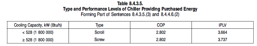 3) Where purchased energy is used for cooling, the equipment used to provide this energy shall be modelled as an electric air-cooled chiller that