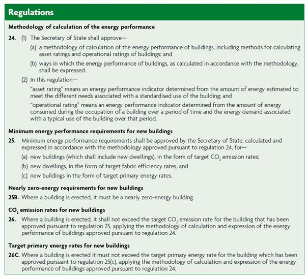 The detailed requirements are outlined in Section 0: The Requirements, under the heading Energy performance of building calculations (paragraph numbers refer to L2A):