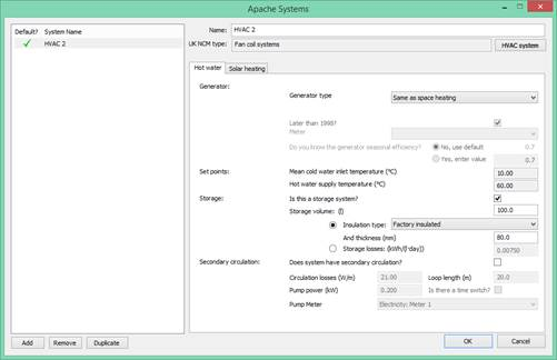 Systems are one of the aspects of building design where substantial carbon emissions improvements can be introduced. The system data is therefore under your control, and it is shared between the real building (as displayed in the Apache module) and the actual building (as displayed in VE Compliance).