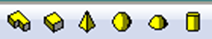 Fig. 2 : Fonctions de dessin affichées sur la barre d'outils de l'application ModelIT. Ceux-ci sont utilisés pour spécifier la géométrie du bâtiment. Les fonctions de dessin sont, de gauche à droite : dessiner une forme extrudée, dessiner un prisme, dessiner une pyramide, dessiner une sphère, dessiner un hémisphère et dessiner un cylindre.