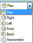 Fig. 3 : La liste déroulante des vues sur la barre d'outils principale affiche différentes vues possibles pour le modèle actuel. La valeur par défaut est « plan », mais « axonométrique » est utile pour visualiser toutes les surfaces du modèle.