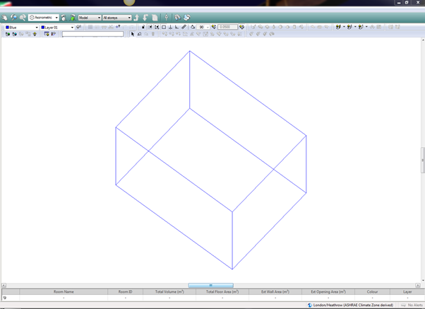 Les pièces peuvent être créées à l’aide de n’importe lequel de ces outils, alors n’hésitez pas à expérimenter. Cependant, dans la pratique, les fonctions de dessin les plus couramment utilisées sont les fonctions de dessin de prisme et de forme extrudée, car elles peuvent être utilisées pour créer des pièces, des halls, des porches, des couloirs, etc. de forme cuboïde qui constituent la majorité des géométries de pièces dans des bâtiments réels. . Pour nos besoins de test, une seule pièce dessinée à l'aide de la fonction « dessiner un prisme » (deuxième icône en partant de la gauche) suffira.