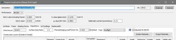Note that for VE type roof-lights the CDB interface provides an option Adjusted for BR443. This is only relevant to VE-SBEM.