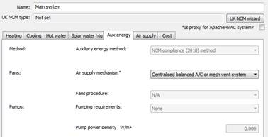 Auxiliary energy values are derived by the UK NCM System Data Wizard in line with guidance in the NCM Modelling Guides for both England (2021 edition) and Wales (2022 edition).