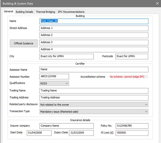 This tab takes different forms for compliance and EPC generation. The screenshot below is for EPC generation. For compliance the format is simpler, with the Building section taking essentially the same .