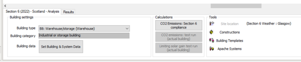 When no room is selected it provides access to the Building & System Data dialog, which displays data at building or system level required by the BRUKL compliance and EPC generation modules, together with thermal bridging data.
