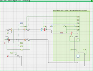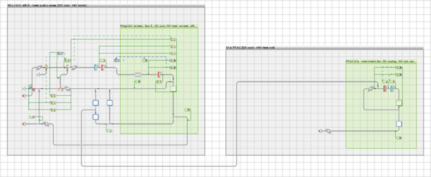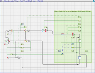 “HVAC network unaltered since being loaded from system or user HVAC systems library—no user edits or auto-sizing yet”