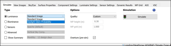 Luminance simulations are used to generate a photo-realistic image or to analyse glare (see