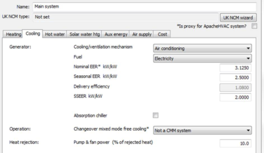 These ‘secondary’ parameters are important for certain design tasks in the Apache module – for example the calculation of boiler and chiller loads. But for VE Compliance, SCoP and SSEER are the key efficiency measures.