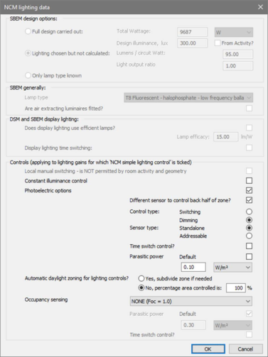 This dialog defines lighting the characteristics of control measures which are to be modelled using the NCM Simple Lighting Control method.