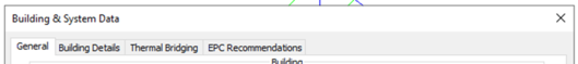 The Building & System dialog, which may be accessed either via the Building Settings menu ‘Set Building & System Data’ or via the Settings menu, allows you to enter general data relating to the building and its systems required by the BRUKL and EPC analyses and ratings calculators.