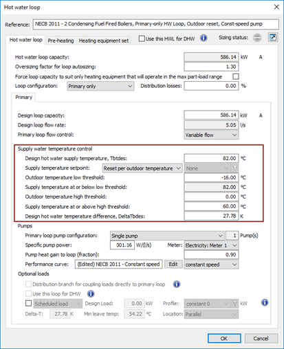 Figure 1: Default NECB hot water loop supply water temperature control settings