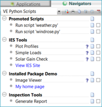 In addition to running scripts from the built-in editor, the VE Python Scripts navigator allows the user to run: