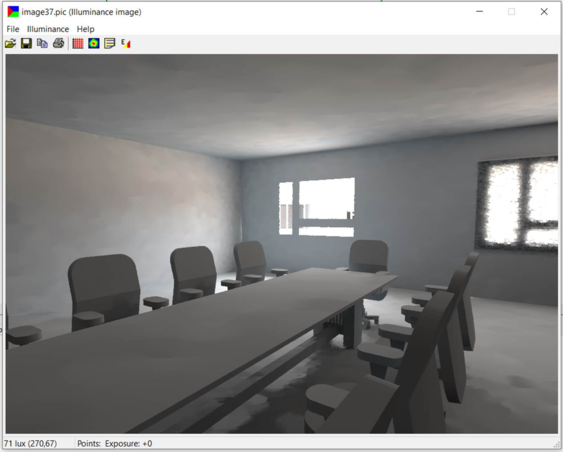 When the cursor is moved across an illuminance image the lux value is displayed in the status bar at the bottom of the window. Left-clicking on any point in the image will display the lux value (or DF value, depending on the selected unit) at that point in the image. A right-click on a point will delete it from the image.