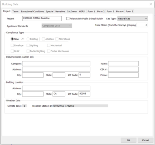 To access the Project Information screen as shown below, click the “Set Building Data” in the navigator and select the “Project” tab. This tab will be open by default once the Set Building Data button is clicked.