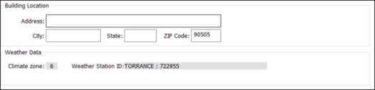 The ZIP Code is required to identify the Climate zone and Weather Station ID for use in the project as shown below.