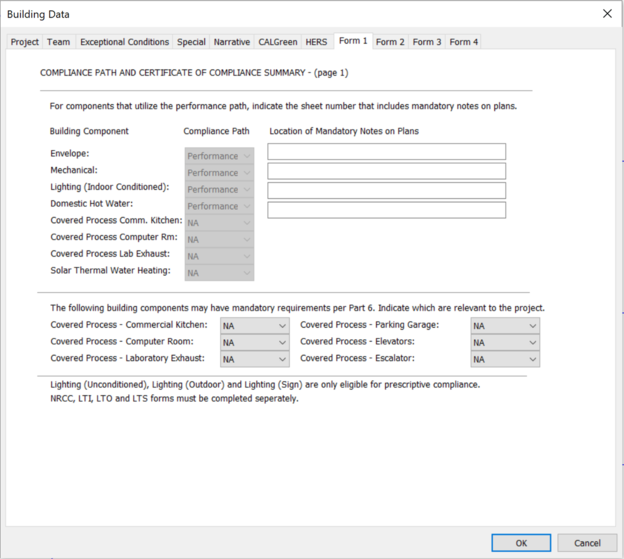 · Compliance Path: The user is required to identify the compliance path for each Building component