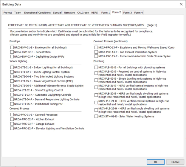 · This form also allows a user to select whether certain building components have mandatory requirements.