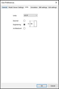 ·         Unit Preferences: This allows the user to switch between unit types (IP, Metric) and between different unit settings (Decimal, Engineering & Architectural)