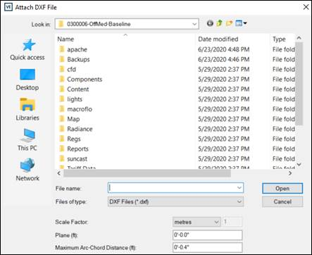 ·Import DXF & Manually Extrude: This can be used to import Autocad DXF files .Use this as a guide in which to trace your rooms over while snapping to the grid at all times. When importing a dxf, it is important to select the correct scale factor. The drawing will appear in grey in the model view window and will sit behind the model.
