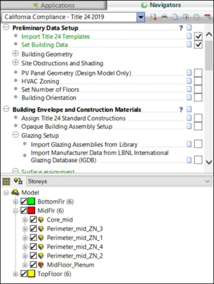 The Set Number of Floors option can be found in the navigator under Preliminary Data Setup in the location shown below. This dialog helps the user to identify and set spaces to the appropriate building Storey. This is an important step in the Title 24 compliance and impacts subsequent sections within the navigator.
