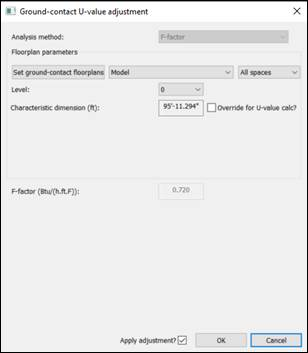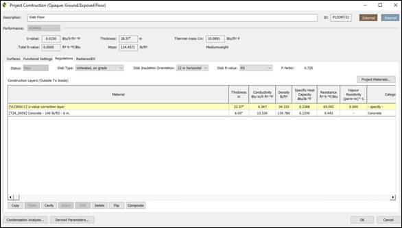 Underground floors can be defined utilizing the F-factor analysis method. This can be done in the Regulations Settings screen.