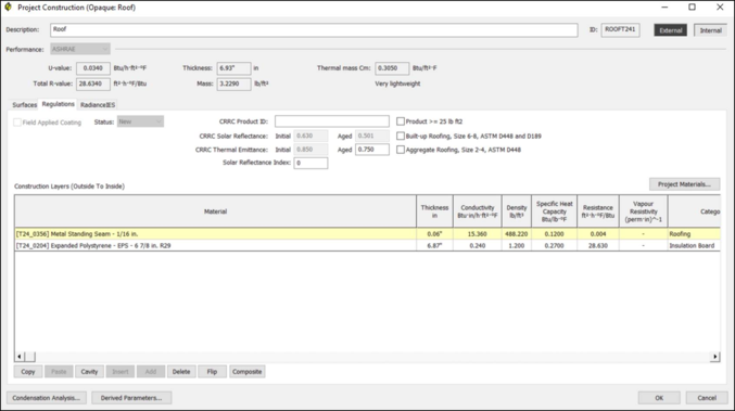 · CRRC: Thermal Emittance(Initial): The Initial Emittance value from Cool Roof Rating Council testing of the roofing