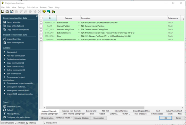 User defined Opaque constructions can be created using the “Opaque Building Assembly Setup” which opens the Constructions Database window.