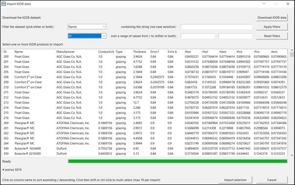 4.4.3.2 Import Manufacturer Data from LBNL International Glazing Database