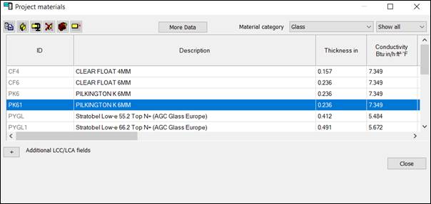 The imported glazing material will appear under the project materials tab in the Apache Construction database.