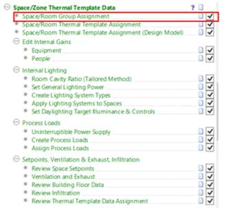 The options to assign Space/Room Group types can be found in the navigator under “Space/Zone Thermal Template Data”