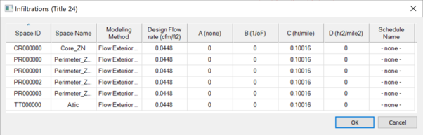 · Design Flow Rate: The quantity of air infiltrating the space in cfm/ft2.