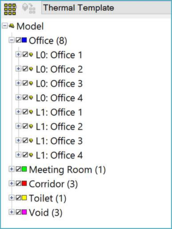 In this section we will walk-through the steps involved in creating a simple script, to interrogate the grouping schemes in our model. We will then use this to generate a list of all of the room ids in our model that’s exclude the rooms in the ‘Void’ group. Before we begin, we must manually create a grouping scheme in our model called ‘Thermal Template’. This grouping scheme contains the groups shown below.