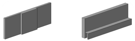 Images from Autodesk Revit: Wall of varying thickness (left) and wall with lower sill (right)