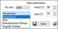 View Parameters lets you set the size of the final image generated (from 400 to 3000 pixels), and choose between different types of views: