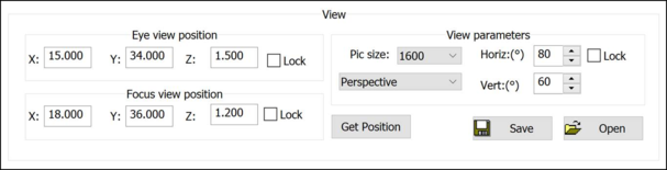 The Save button will save the currently displayed View options, i.e. view position and parameters in an .rdv file. The Open button can retrieve any view previously saved in an .rdv file.