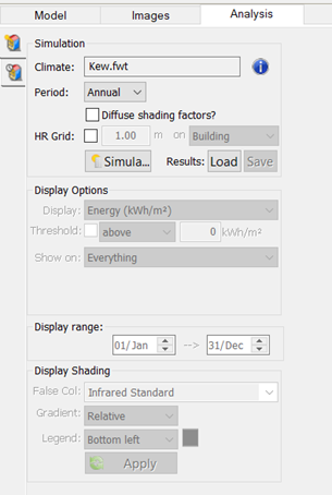 The next option is whether or not you want to take into account diffuse shading factors when running your simulation. This will make your Energy Analysis results more accurate however, it comes at the cost of increasing your simulation time. The Exposure Analysis is not affected by this output but the option is still there in case you want to then go on and perform Energy Analysis.